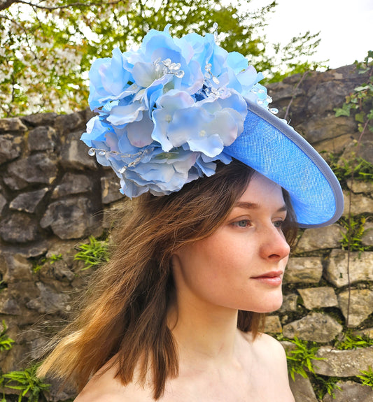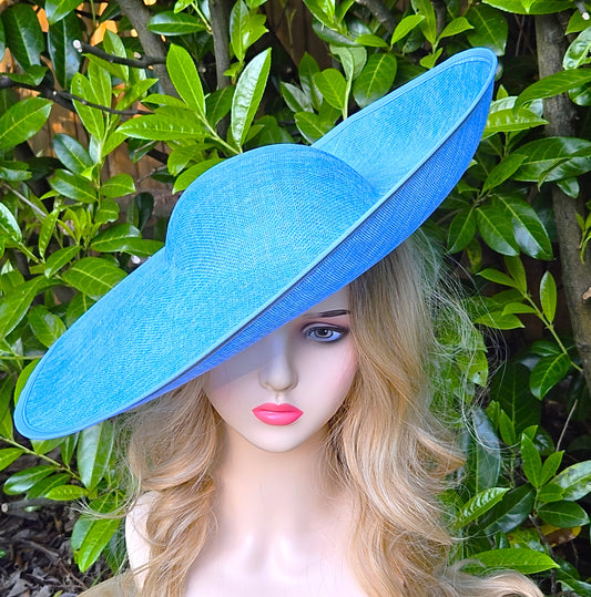 Light Blue Millinery Hat - Large Wedding Hat with a Wide Brim - Ladies Ascot Hats Racing - Church Hats for Women