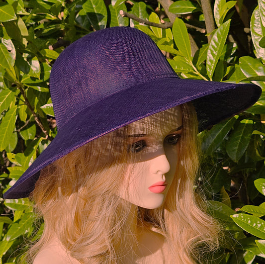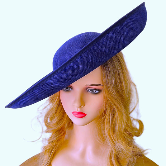 Navy Blue Millinery Hat - Large Wedding Hat with a Wide Brim - Ladies Racing Hats Ascot - Church Hats for Women