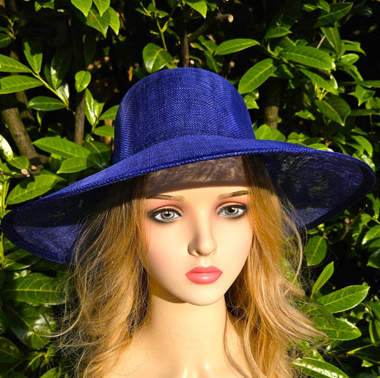Royal Blue Ascot Hat with Wide Brim - Large Wedding Hats - Ladies Racing Hats - Plain Church Hats for Women