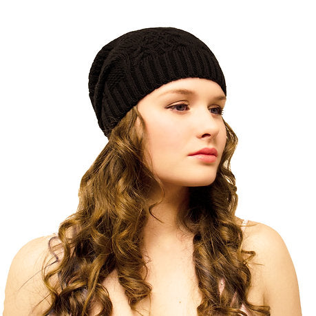 Cable Knit Long Slouchy Beanie Black