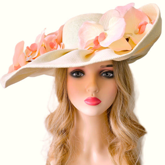 Ascot Hat Cream Pink - Wedding Hats - Women's Hats for Races - Ladies Church Hats