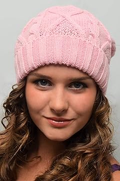 Bobble Hat Pink Cable Knit - Ladies Woolly Hat - Winter Beanie for Women
