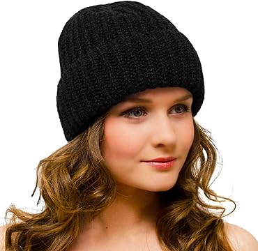 Woolly Hat Black – Ladies Beanie – Winter Hat for Women