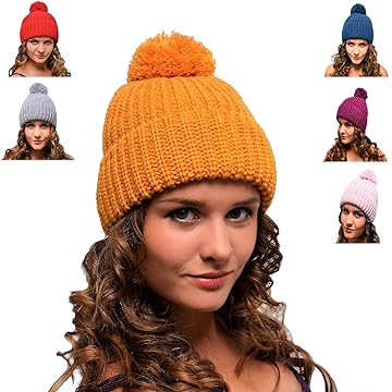 Chunky Bobble Hat Mustard - Ladies Woolly Hat - Beanie with Pom Pom for Women