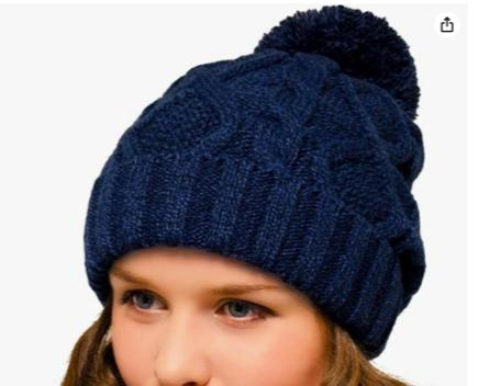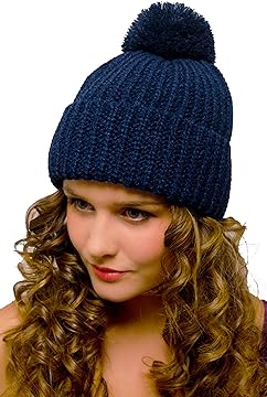 Chunky Bobble Hat Navy - Woolly Beanie with Pom pom for Women Men
