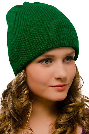 Warm Winter Knitted Hat Uncuffed 2 Layers Green